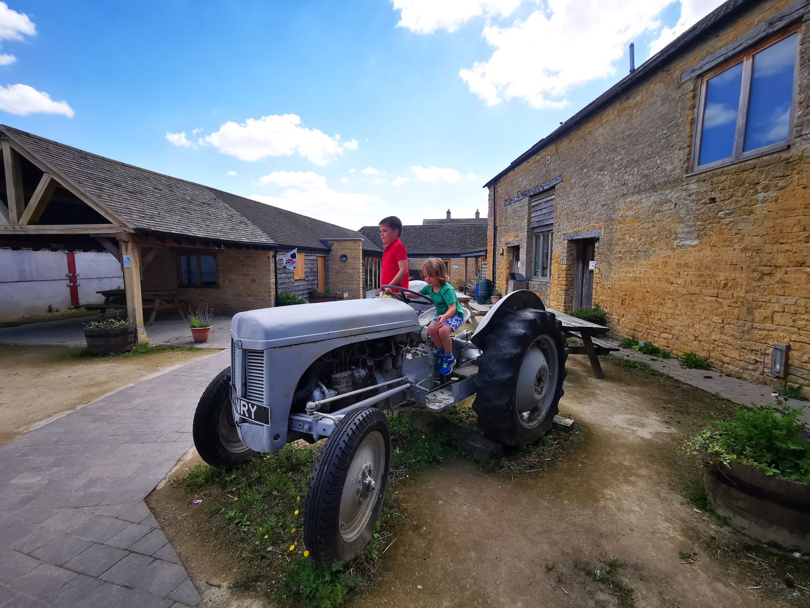 There is no parking up at the nature reserve apart from one or 2 disabled spots so you do need to park in one of the other car parks and walk in (we were in the one furthest away). You will eventually arrive into a farm (names a bit of a giveaway). There’s a courtyard with toilets (Open). A tractor for climbing on. A cafe (Was shut when we arrived) and a shop (Also shut at the time). In normal times it looks like it would be a great spot for lunch.
