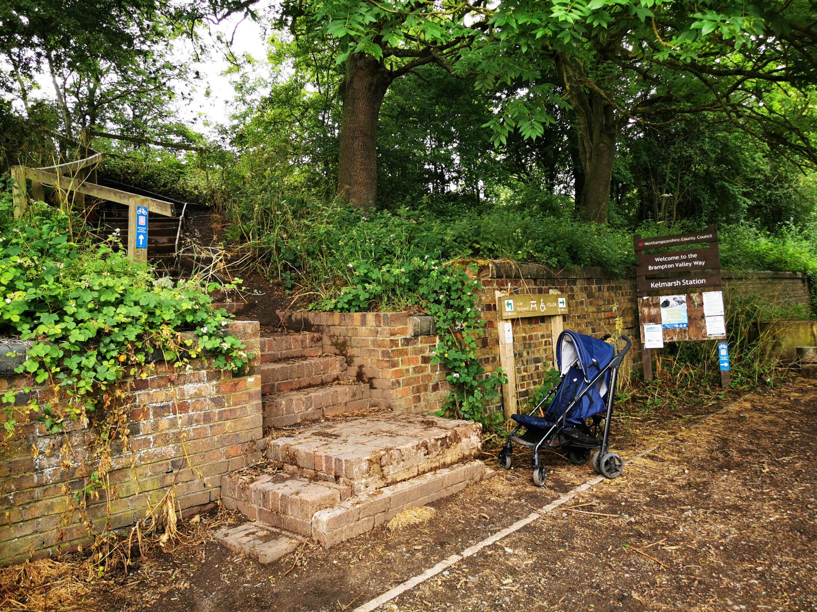 At the car park if you walk towards the signs you’ll see steps to the left. Head up those you’ll need a hand with the pram at this point but after that its plain sailing. Once you get to the top turn left. Signpost right in front if you don’t know your left from right.