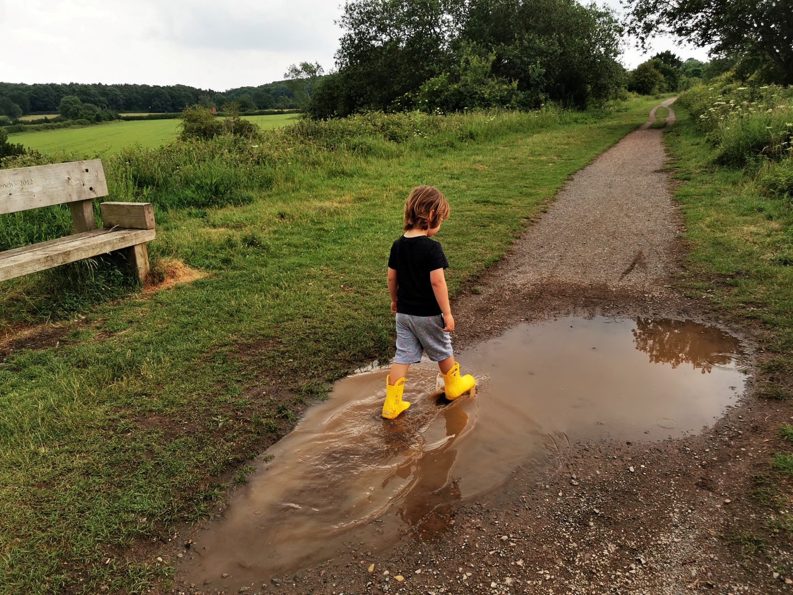 As we walked along inevitably the rain caught up with us. Elliot tried to brave it out but even he couldn’t last too long without his coat as the rain got heavier. Luckily he wanted to wear his wellies today too as there were plenty or puddles to splash.