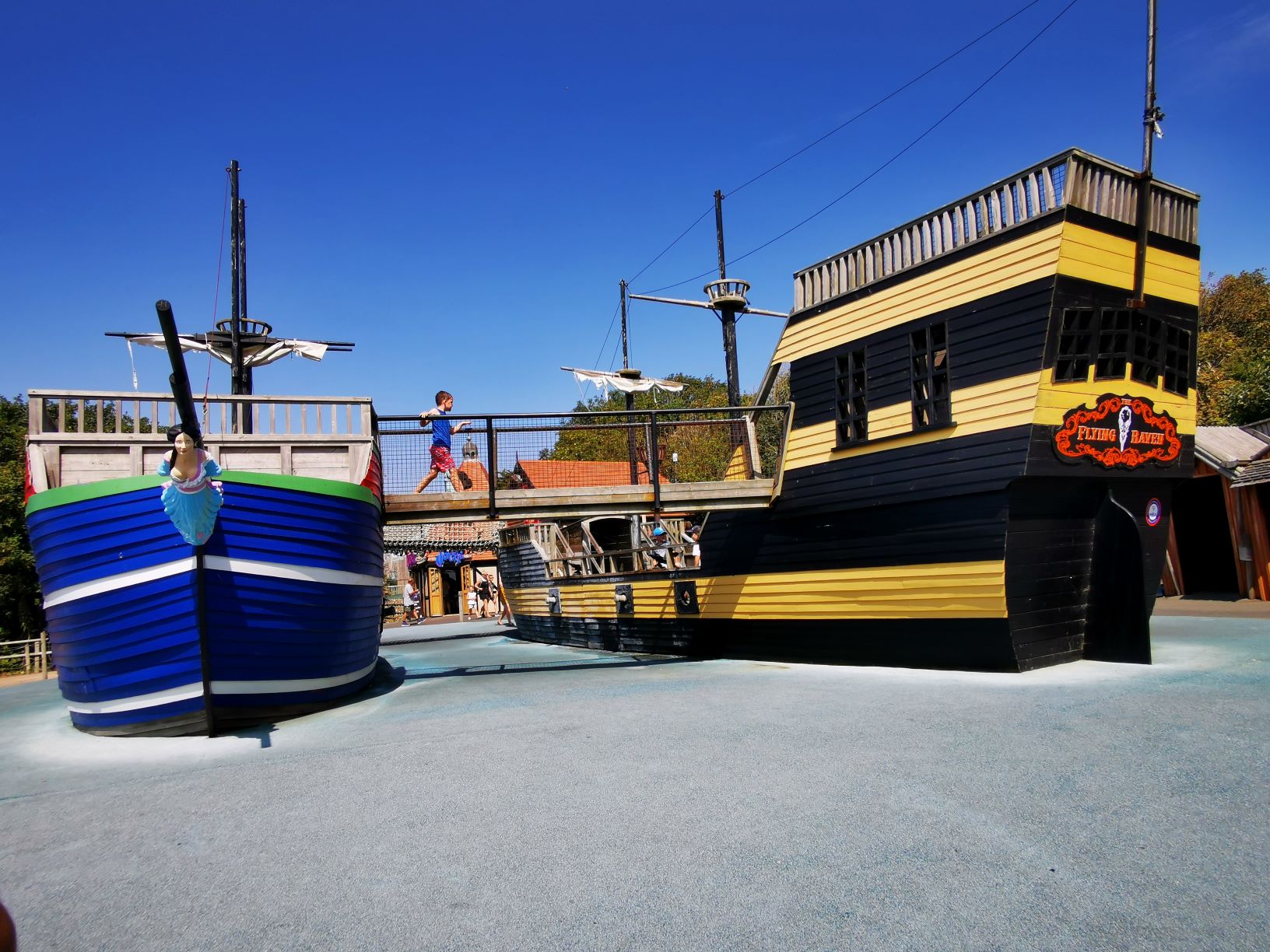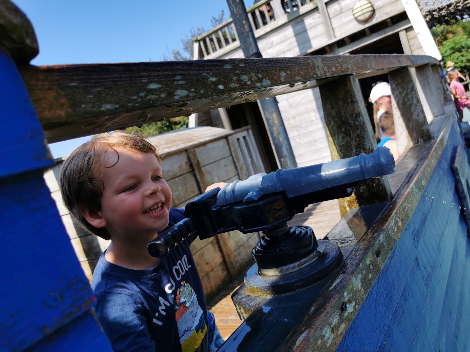 Ok not the actual ships but this next part was by far the boys favourite area. 2 big ass ships with cannons on. Not just any cannons but cannons that shoot water out. They were in heaven and luckily it was hot enough to not care if they got wet or not.