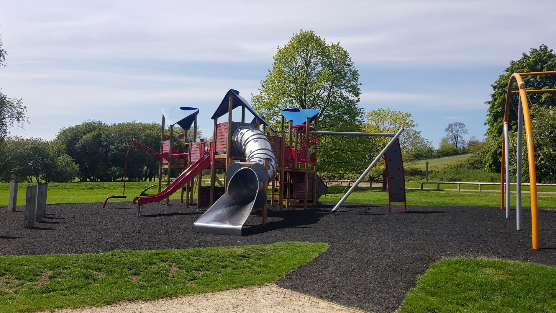 They have so many parts for the kids to play with i will no doubt miss loads off but they have. A zip wire, huge car springy face twatter, more slides, a really fast roundabout, some really cool swings, A cargo net swing, plenty of benches and a huge amount of open green space for games.