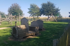 It’s a lovely timber play area with a fab little train for the younger ones. Now the climbing frames are not toddler friendly. Don’t get me wrong the little suicidal maniacs will still manage to get to the top in the split second you take you eyes off them then decide they want to get down bungee style without the rope! It’s a bit of shame as the only slide in the park is attached to one of the frames.