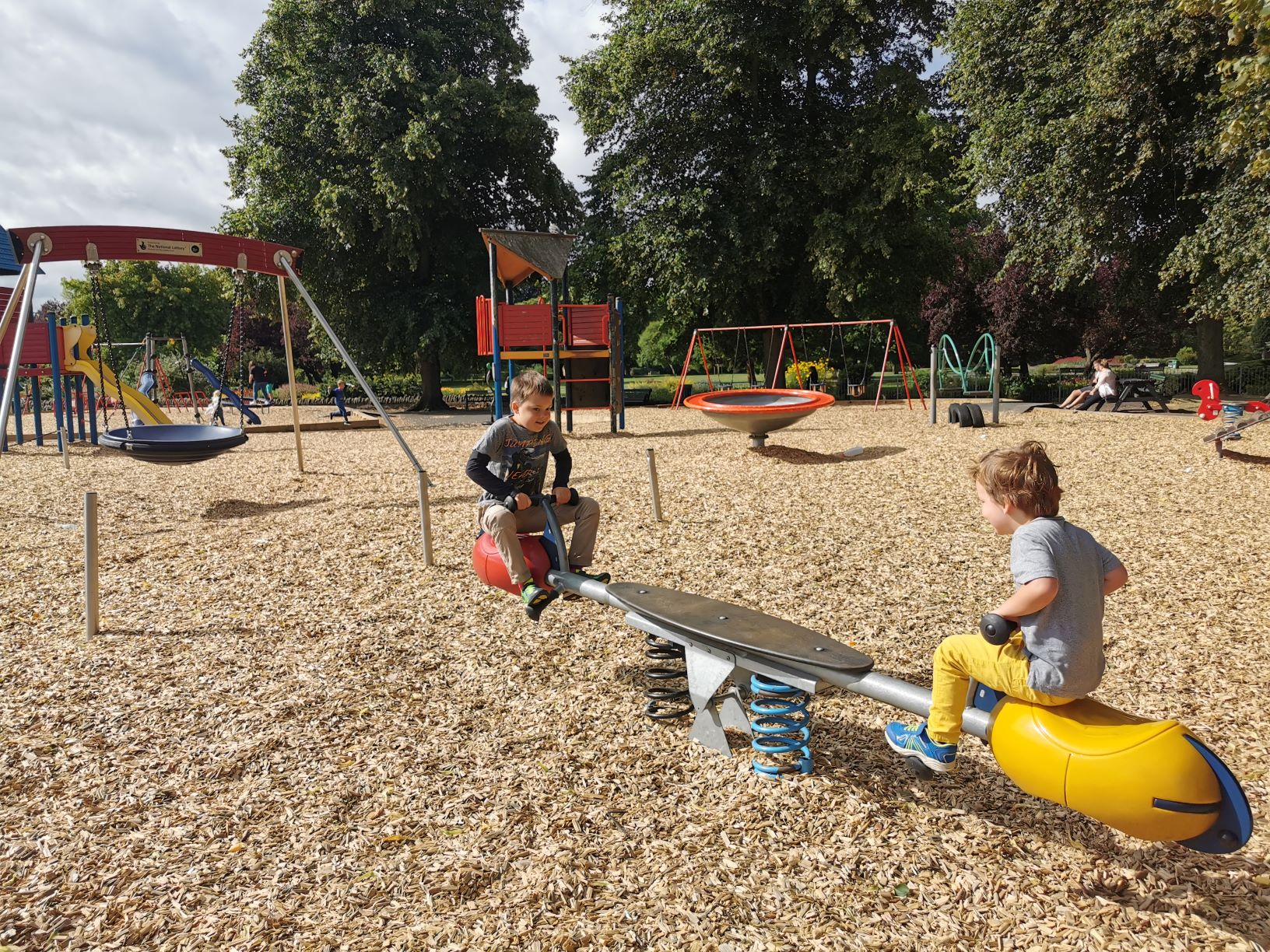The parkland itself is stunning amazingly well maintained. There’s a little stream running through the middle of it. You will see loads of kids jumping it. Elliot moaned and moaned (I mean for ages) about jumping even though I said he was too small. He called me a LIAR haha. So bad mummy let him try it and he massively failed and now has a big bruise on his leg. Needless to say he didn’t moan about it again.