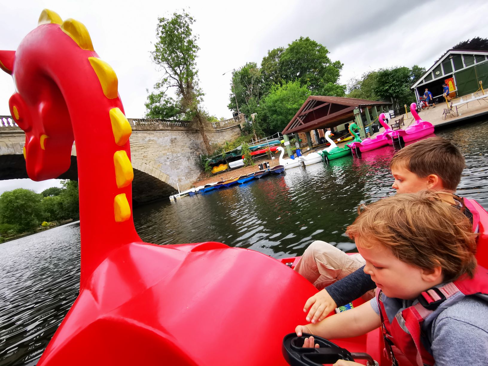 From the start to the finish of the pedalo hire the staff were absolutely amazing!. They chatted with the boys and joked round with us. All while being safe. Hand sanitiser no contact and constant cleaning. We were put totally at ease. Next up we had to pick the pedalo. Thank god they both agreed on a big red dragon. I was kinda hoping they’d go for the giant pink flamingo but ah well.